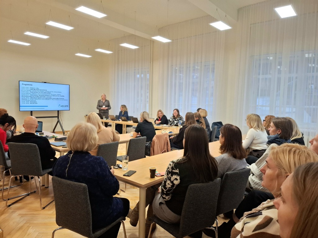 Seminaro dalyviai susipažino su atvejo studijomis, apimančiomis 5 temas: įsidarbinimo galimybes ir įtrauktį, dezinformaciją konfliktų metu, informacijos pertekliaus valdymą krizių metu, specialiuosius poreikius, emocinę sveikatą ir gerovę. Lietuvos kontekste praktine patirtimi pasidalino doc. dr. Gintarė Tautkevičienė (KTU), Rasa Seliuginienė (KTU) ir Marjan Monshi (KTU), aptardamos užsienio studentų integracijos ir įsidarbinimo galimybių gerinimą.