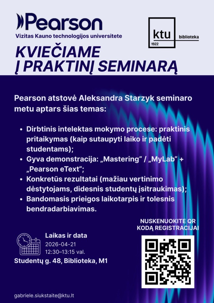 Kvietimas į Pearson atstovų vizitą KTU bibliotekoje