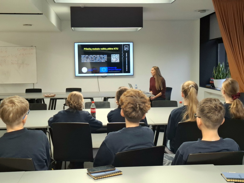 Gruodžio 4 d. Kauno Vinco Kudirkos progimnazijos 6 klasės moksleiviai lankėsi KTU bibliotekoje vykusiame informaciniame renginyje, kuriame klausė paskaitos apie piliečių mokslą ir atliko kūrybinę praktinę užduotį.