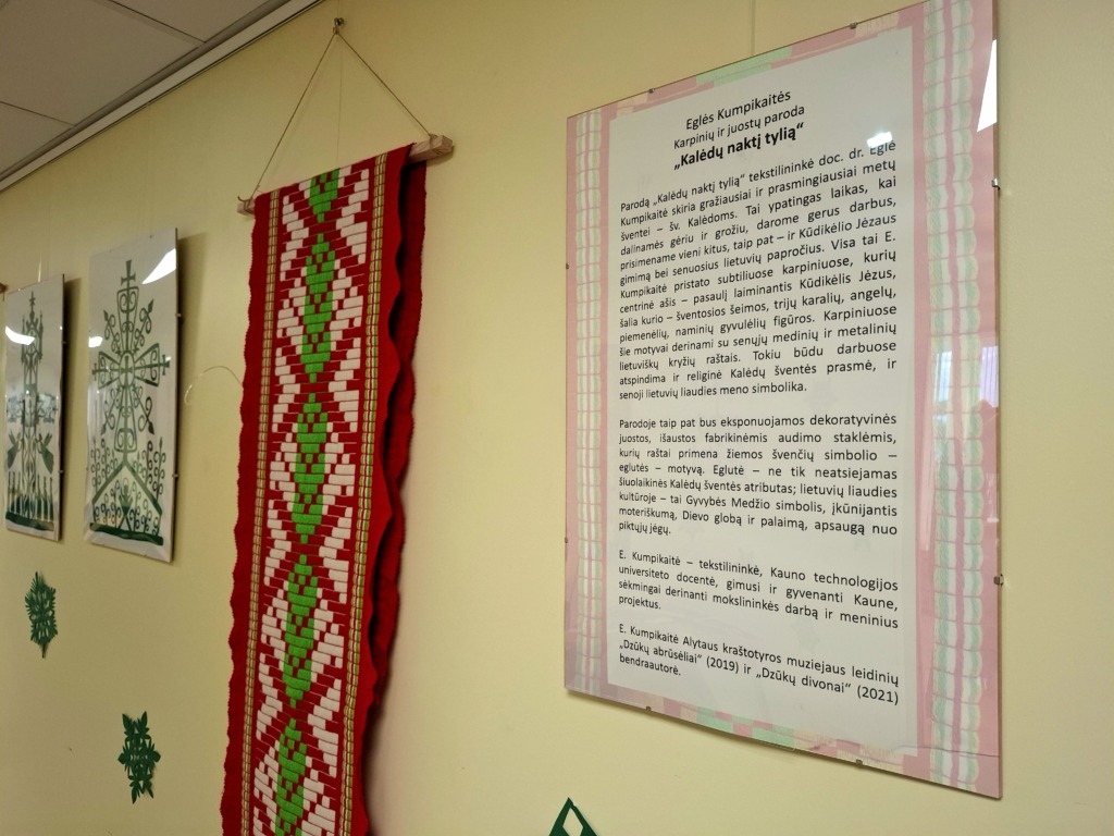 Mechanikos inžinerijos ir dizaino bibliotekoje gruodžio 11 d. buvo atidaryta Gamybos inžinerijos katedros docentės Eglės Kumpikaitės kalėdinių karpinių ir dekoratyvinių juostų paroda „Kalėdų naktį tylią“.
